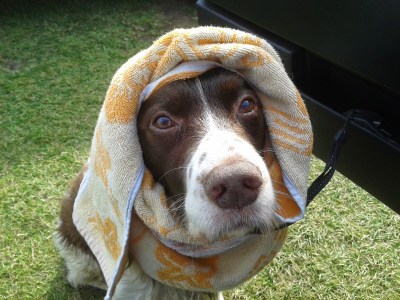When we got back to the car it was time to dry Bertie off before going onwards – I think he suits the towel turban look.