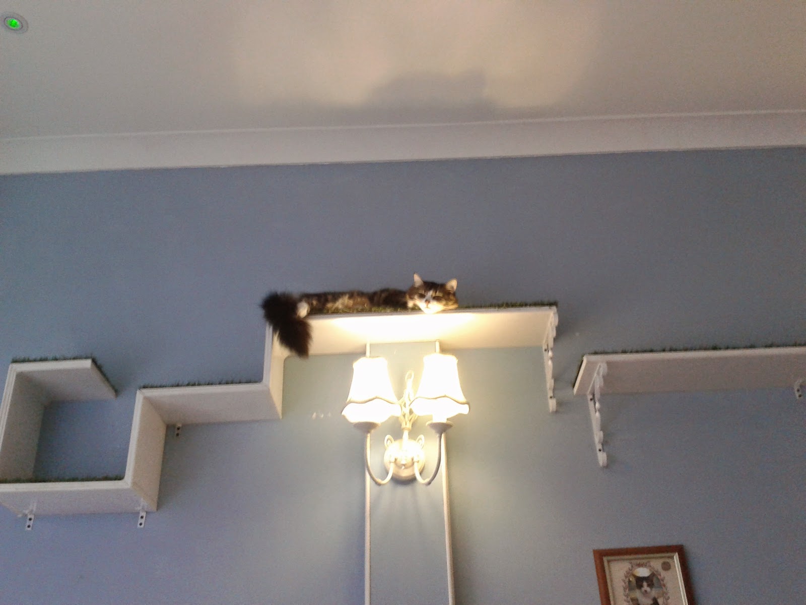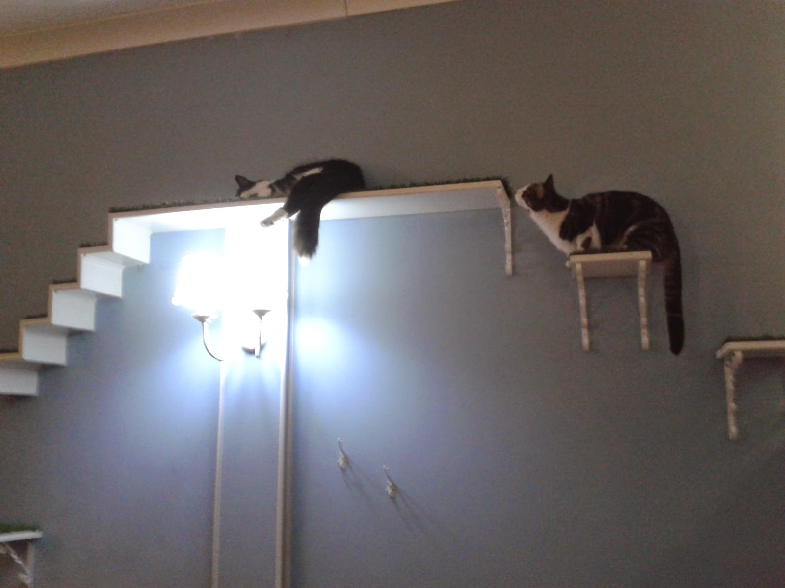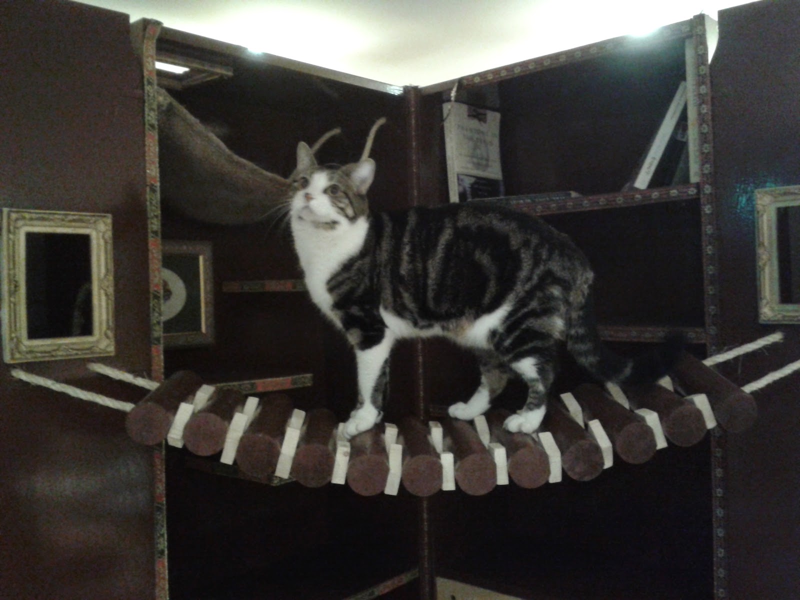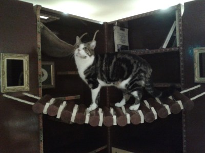 All throughout the cafe there are lots of hiding spots for the cats and lots of high up places for them to survey their measly servants from. I would love to have a home where I could put cat shelves up for our two brats.