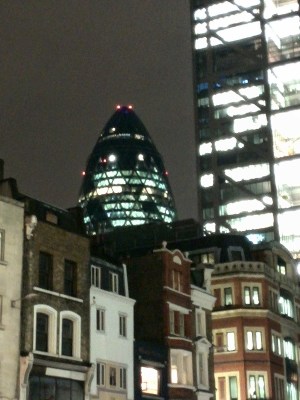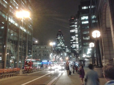 As we walked towards the station we had a great view of the Gherkin lit up in the London skyline.