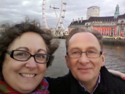 The next day we had one of our wander aimlessly in London days which I’m going to blog about separately, but here’s one shot to enjoy – us with the eye behind us and yes it was a little bit windy.