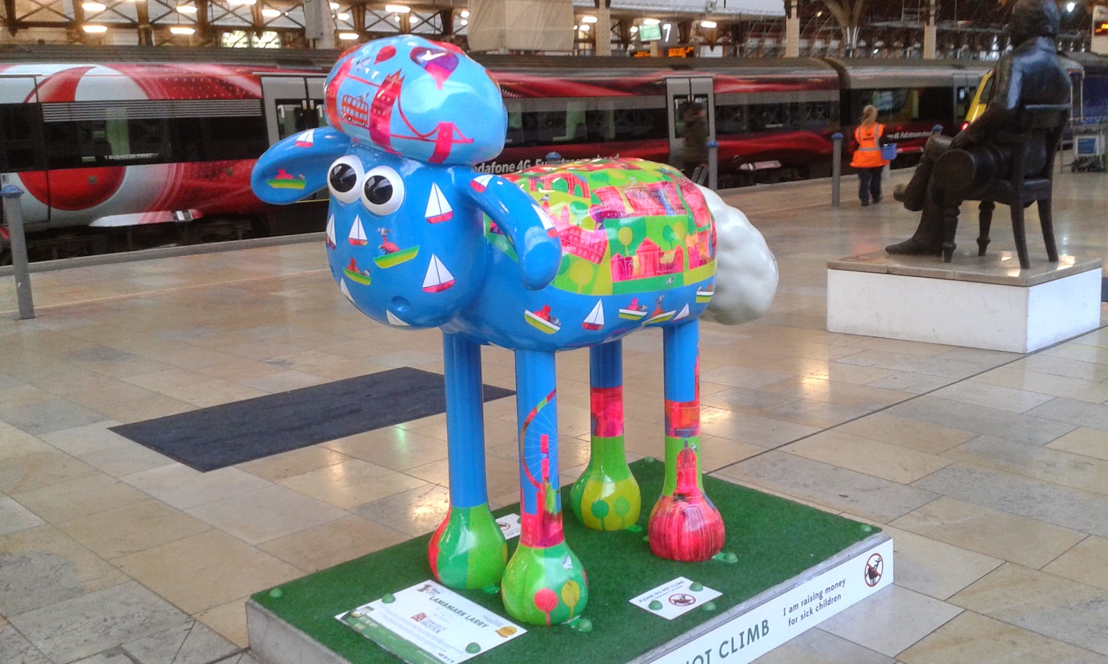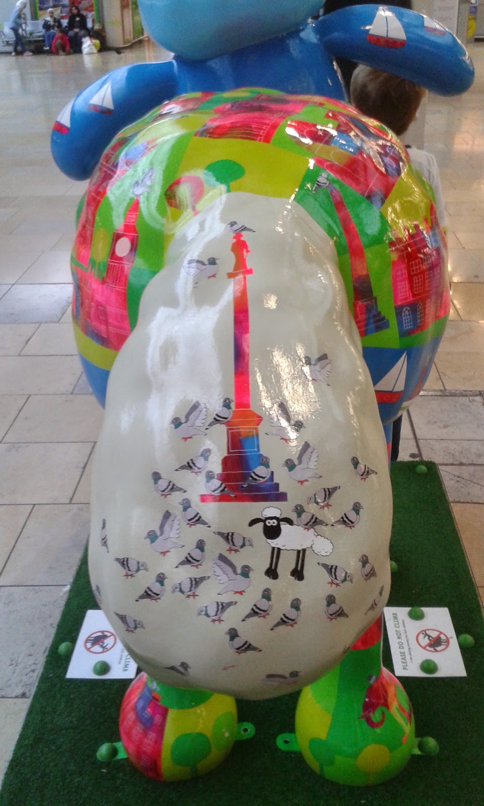 At Paddington station we found another Shaun decorated with London sights – Ken got up close and personal. Shaun’s tail has Nelson’s Column with the obligatory pigeons.