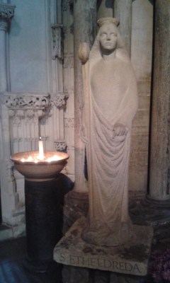 The earliest church on the site of the now cathedral was a monastery founded by St Etheldreda in AD 673, so as you would expect there are quite a few memorials to her throughout the building and people come on pilgrimage to her.