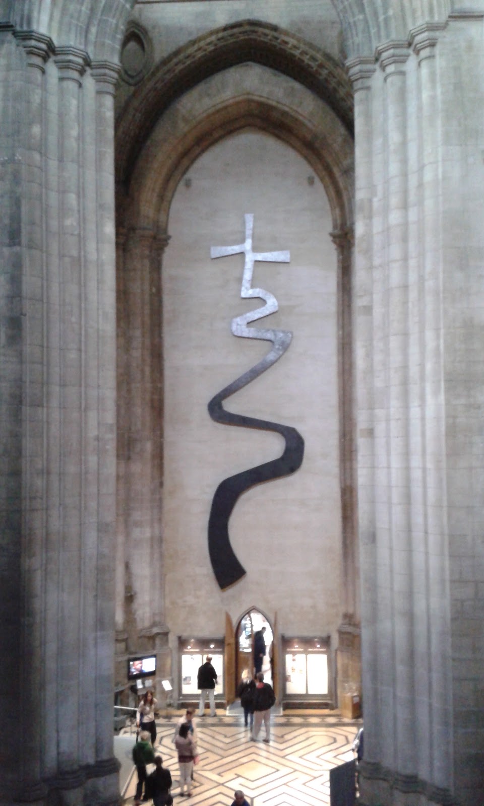The beautiful sculpture of the cross below is entitled The Way of Life and is by Jonathan Clarke – showing that faiths journey is not always smooth. Below the cross you can see that on the floor of the cathedral is a labyrinth. Walking a labyrinth is a great meditative tool and also can reflect a spiritual journey.