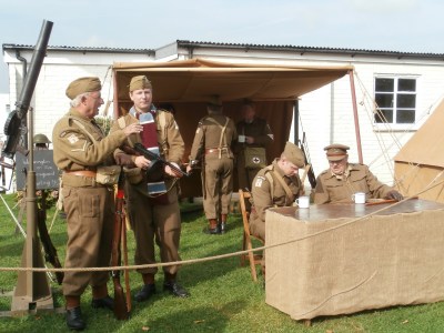 Loved the below – a bomb shelter with teddy bears dressed in retro gear.