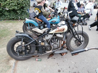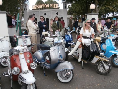 One of the themes of the festival in 2014 was the mods and the rockers – it was 50 years since in the clashes at British seaside resorts between the two groups. The story of the Brighton riot was told in the film Quadrophenia. So as expected there were lots of motorbikes (rockers) and scooters (mods) on display and each day they had a recreation of the clashes. There was even a mini Brighton pier with sand and deckchairs.