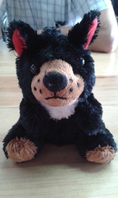 I’m sure if you’ve read any of our blogs you’ll know that we’re big fans of silliness – we like to have a laugh, so we’ve obtained a mascot for our holiday and he will be sharing our adventures with us. We’d like to introduce you to Crumble the Devil (crumble after one of my favourite chocolate bars, violet crumble) and a devil as they’re uniquely Tasmanian.