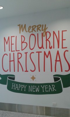 The airport was decorated for Christmas and we loved the decorations that were painted on the walls.