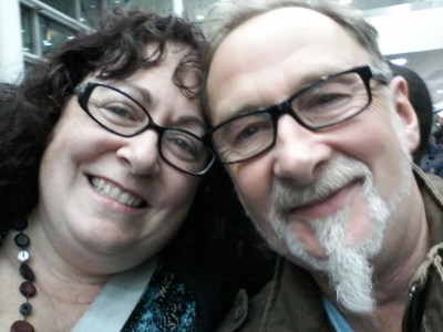 Picture of us in Heathrow waiting for our flight minus makeup so a little bit scary.