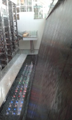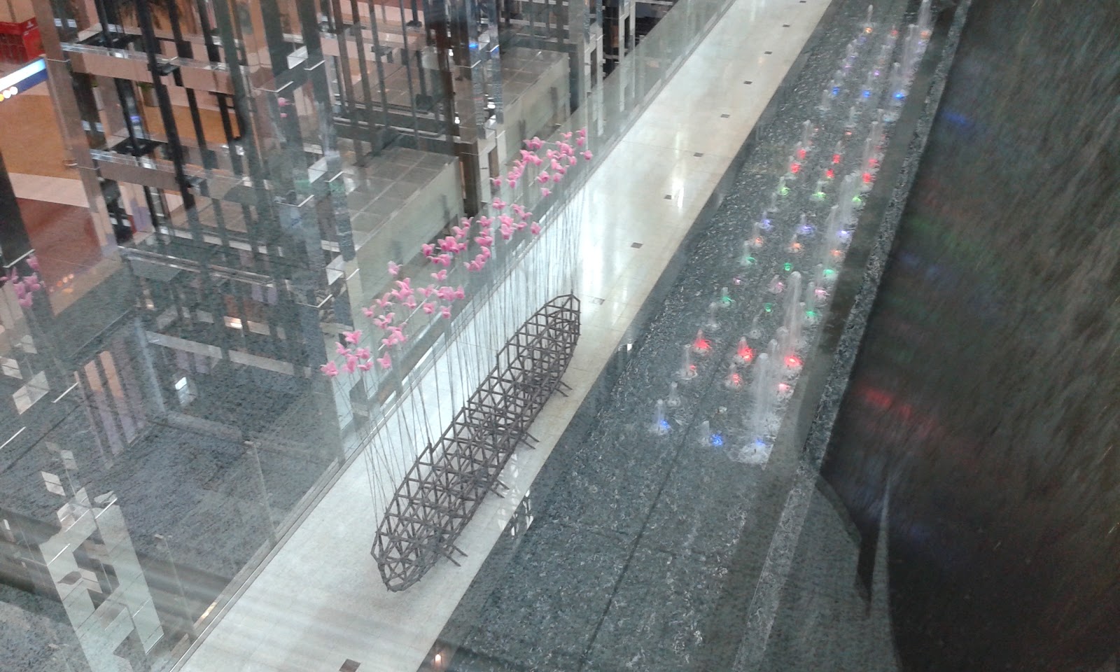 After nearly 7 hours on the plane we had a two and a half hour stop in Dubai – the airport is lovely and we like this fountain that sits behind the elevators.