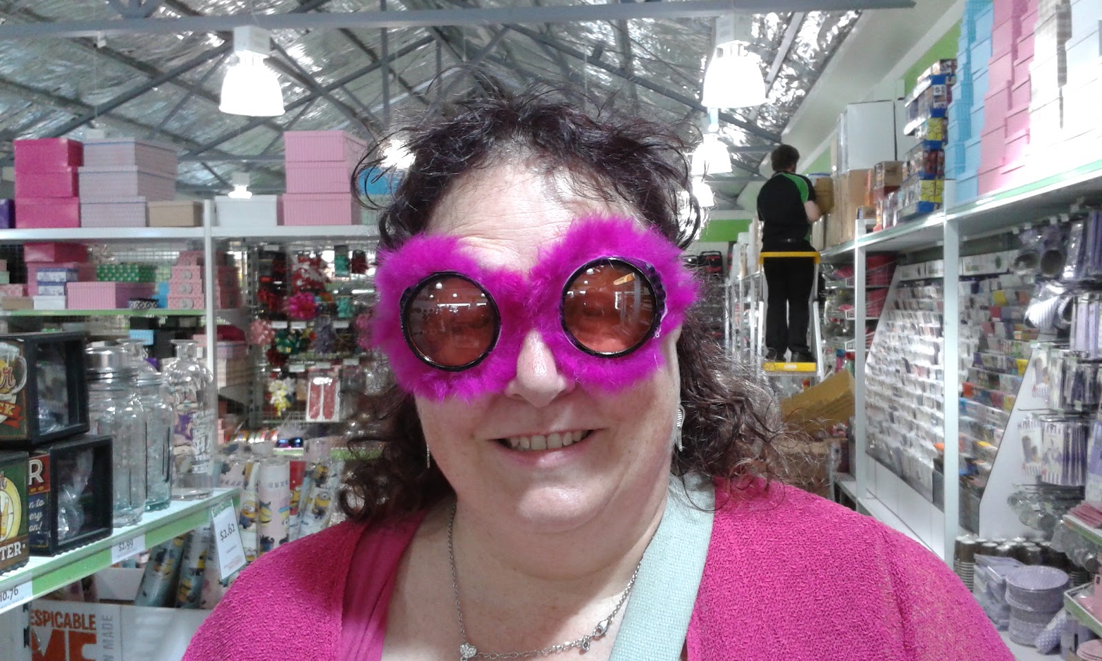 Now in the past I have been known to make my beloved put on silly hats so that I can take pictures of him – today I think Ken was getting his own back when he made me model these glasses – at least they matched what I was wearing.