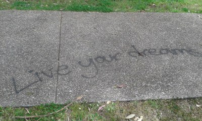 We then walked down through Gutteridge gardens  which were developed by Richard Gutteridge after the first world war and after his death in 1940 the council took them over. Along the path someone has written some very positive graffiti on the path – this was just one of many.