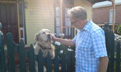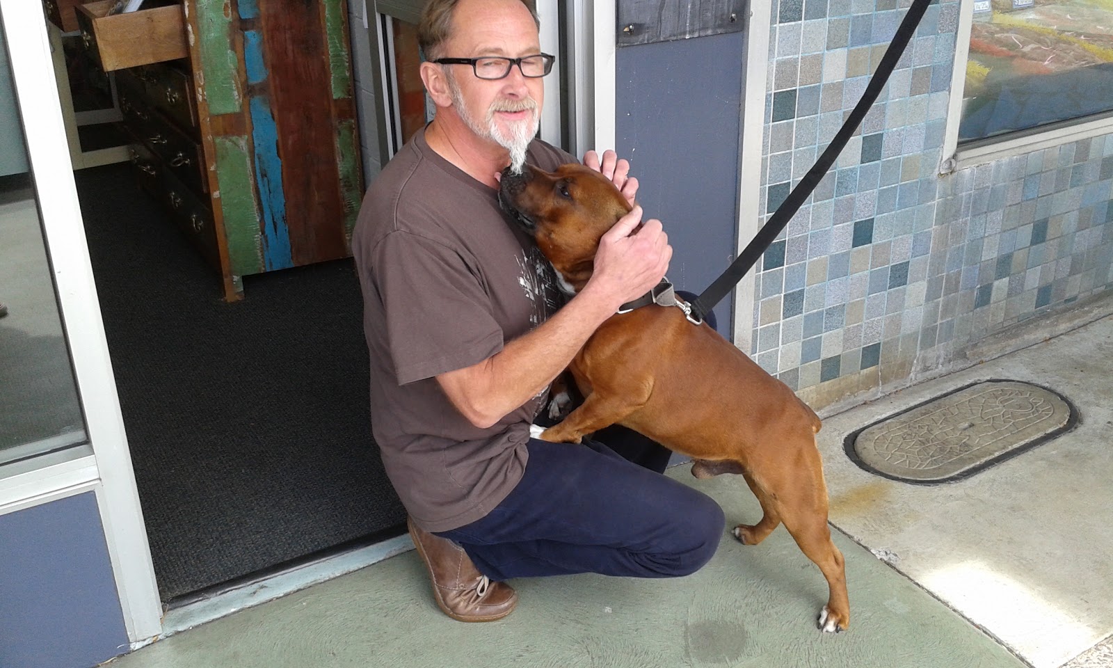 Here’s my beloved making friends with two more puppy dogs. The top one’s name is Watson who was patiently waiting outside the butchers for his daddy – I hope they bought something nice for him to eat.