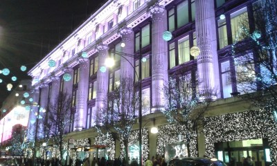 I always love how Selfridges looks at Christmas – lit up in purple, my favourite colour, and lots of sparkly lights.