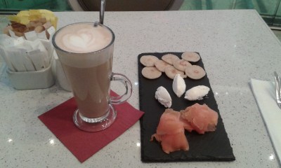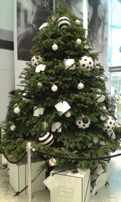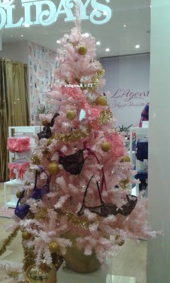 I then went to the Village, which is the posh part of Westfield, and treated myself to a latte and smoked salmon blinis. It was very civilized and great for people watching as I was sat opposite an Agent Provocateur lingerie shop, which had a very interesting Christmas tree in the window.