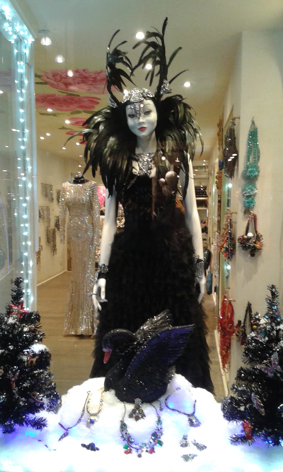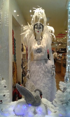 The next two pics are the window display in a very posh jewellery and accessories shop – I love the swans. |