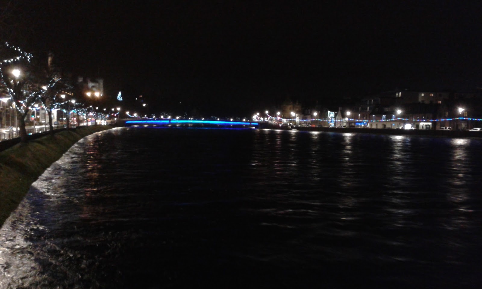 What you can’t tell by this picture is that it was pouring with rain when we went into Inverness for the evening – the river was running very fast.