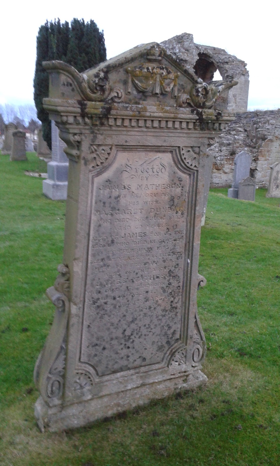 Our final stop for the day was Kinloss Abbey which is the remains of a Cistercian Abbey founded in 1150. There are some fabulous gravestones and as it was dusk whilst we were there it was very atmospheric.