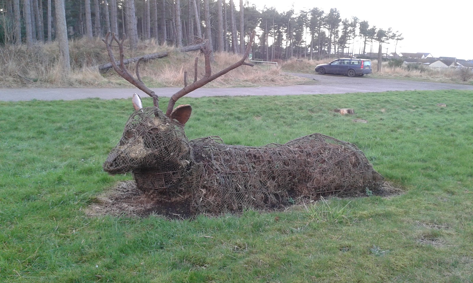 This is a very interesting deer that you pass on the way in and out of Burghead – I hope during the summer he grows some foliage.