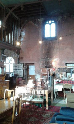 One day whilst I was at work, Ken’s sister Jean took him to a great antique/second hand Aladdin’s cave, so of course when it got to the weekend Ken took me there. It’s called Aldearn Antiques and it’s fantastic. As you can see it’s in what I think is an old church and it has so much stuff both inside and out – from bits of buildings to furniture to clothes.