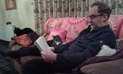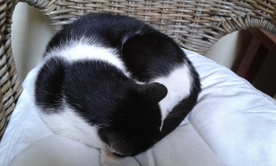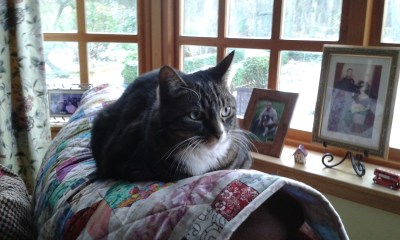 Final two shots of our brats – Cookie doing her yoga and Muffin being friendly and sitting on my knee.