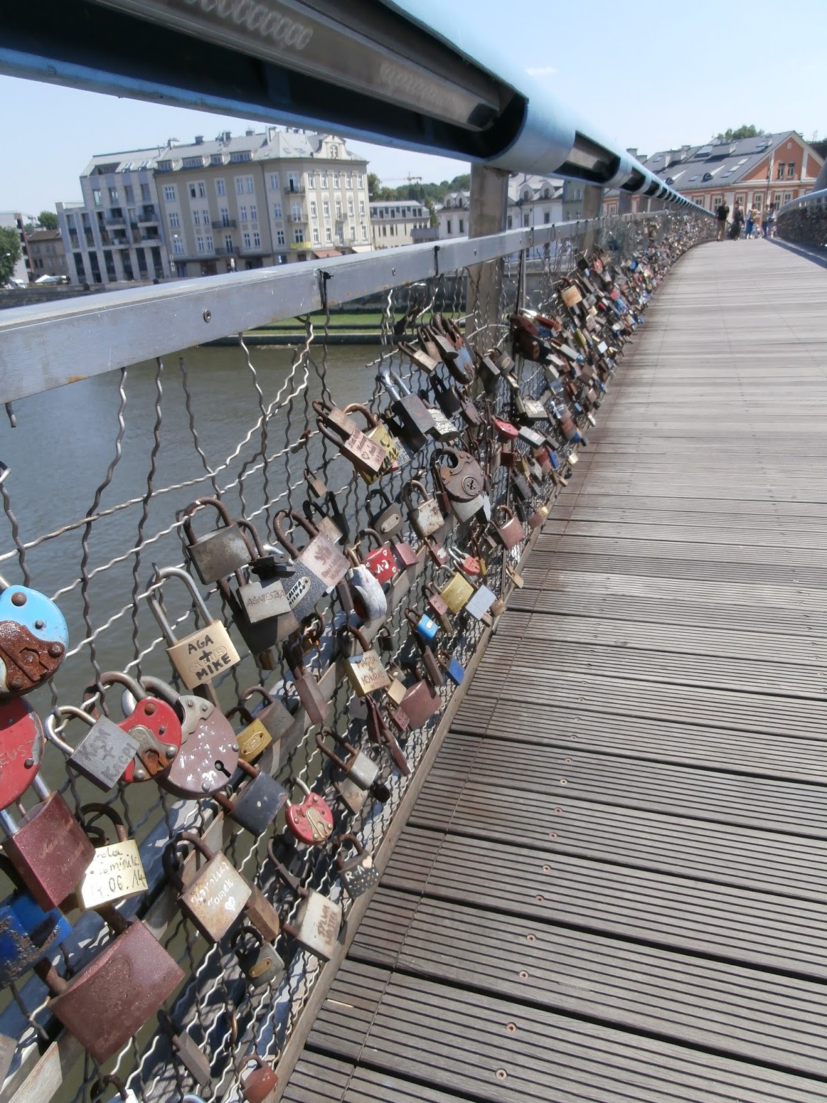In many cities now you will find bridges with padlocks all over them which people use to profess their love. Krakow is no different, with this bridge being covered with locks of all shapes and sizes and yes, we added our own to it.