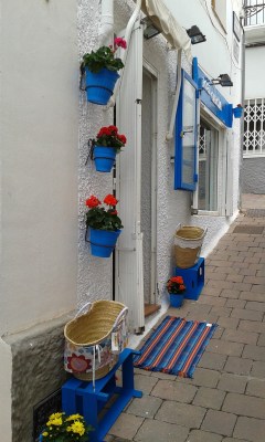 The reason we’re in Spain at the moment is another E word and that is Elaine (and Paul), friends of ours who are living here. Picture of Elaine, Paul, and my beloved with the beautiful sea behind.