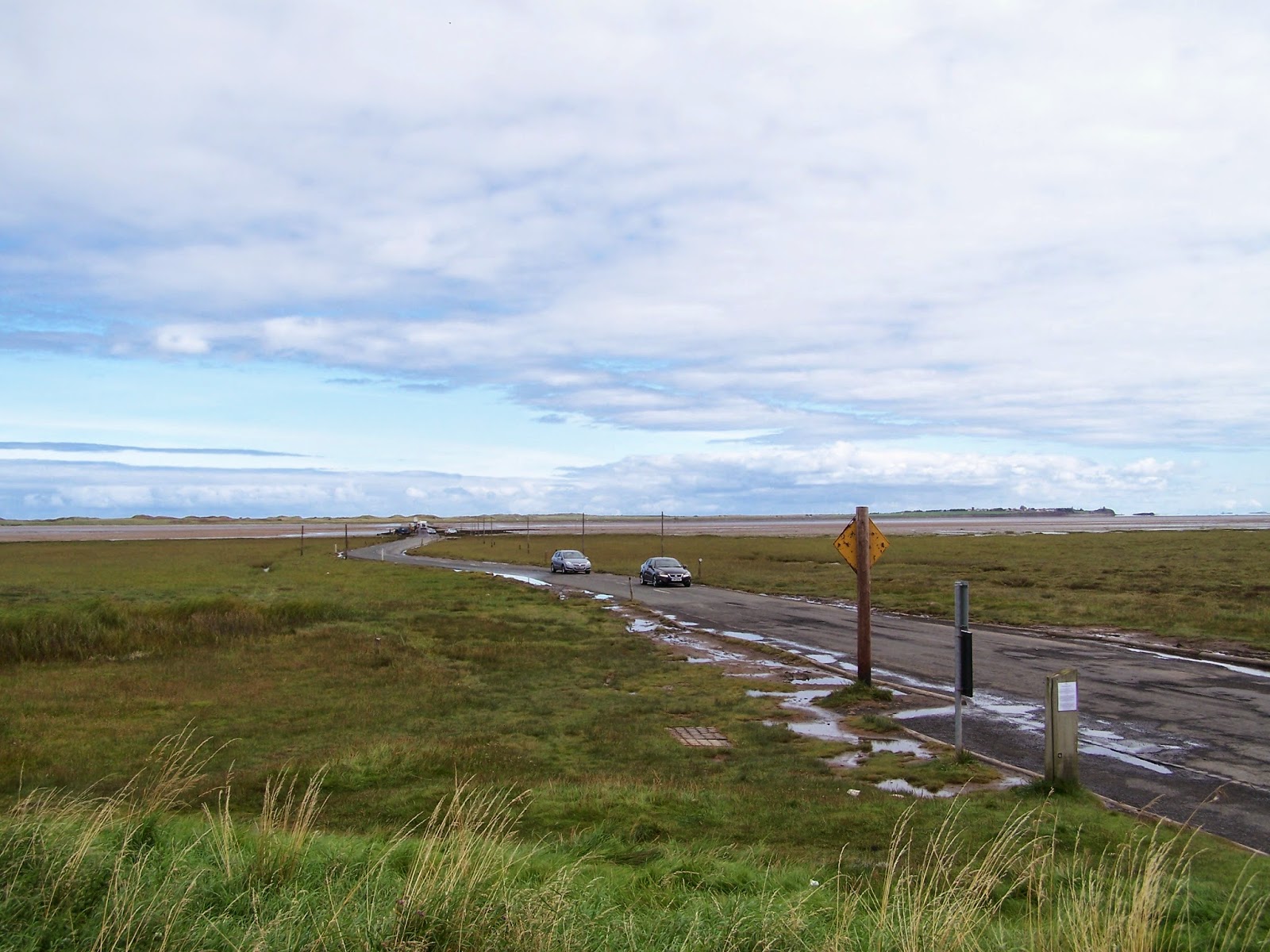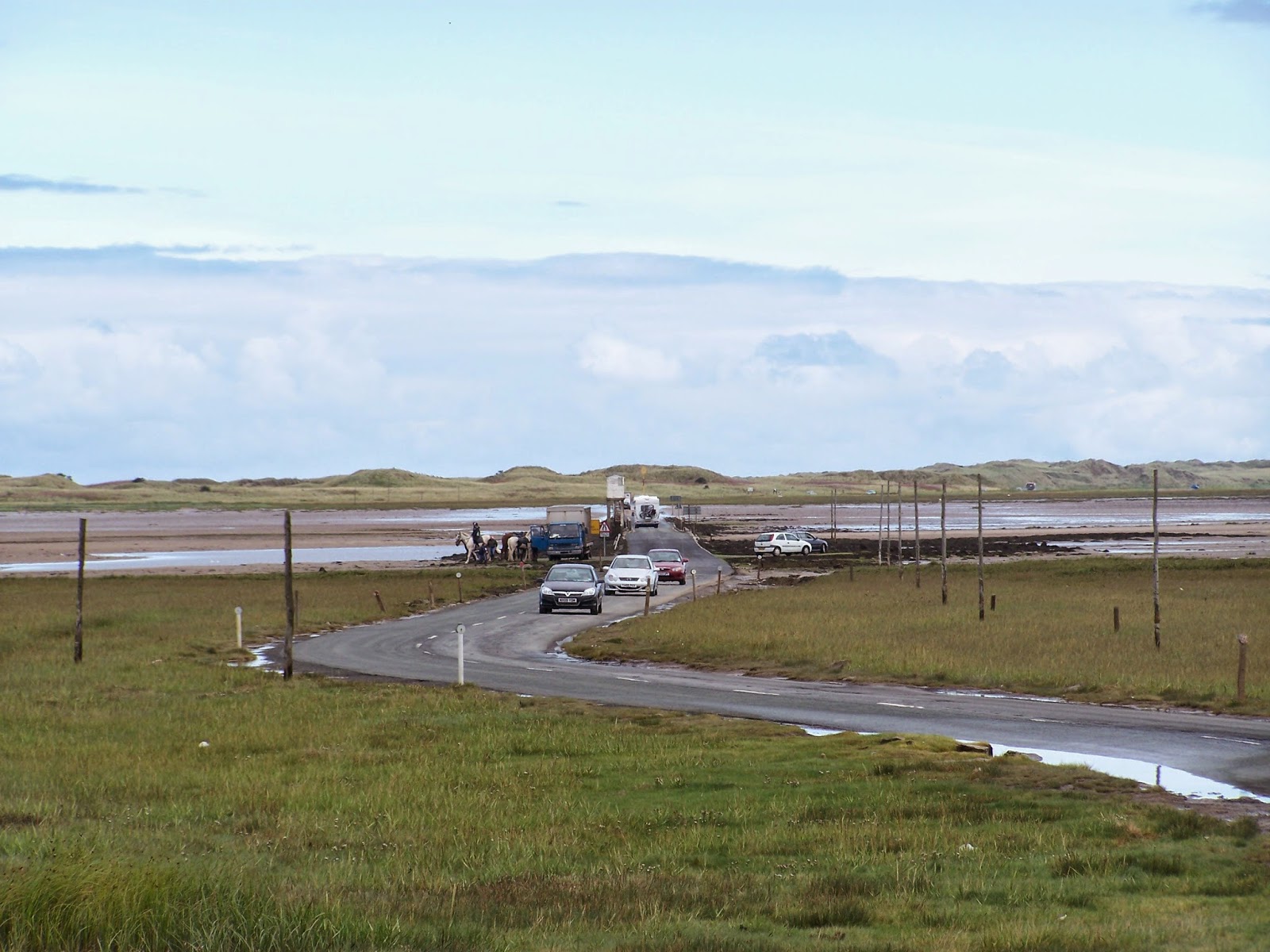 The island is accessed by a tidal causeway, so twice a day there is a dry road to use to get across.  Obviously part of visiting is knowing the tide times as many tourists have been caught out in the past, thinking they can make it across and then their car is swamped by the sea.  You can see by the pictures below that you would never know there was a road there and then suddenly there is.