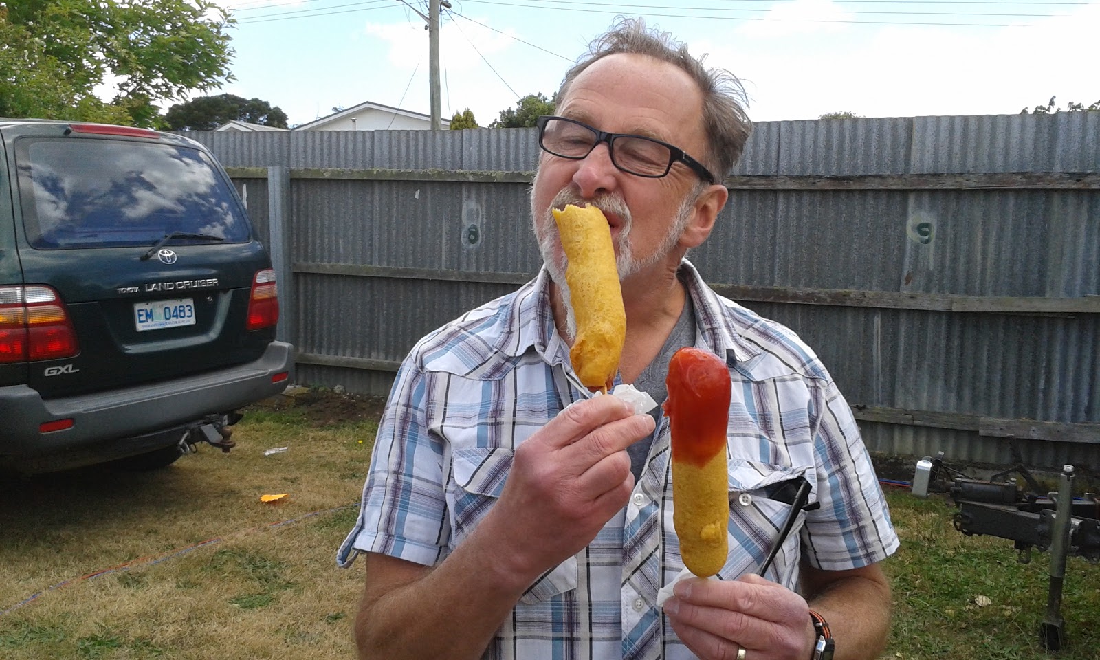 Whilst he loves real dogs, we’ve established that my beloved hates Dagwood Dogs, a speciality at Australian country shows – this picture is of him trying his first and last.