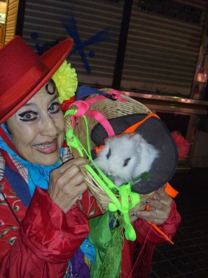 Our first quirky person is a lady that we encountered in Barcelona 11 years ago – she had done her makeup to look the same as her rabbit.  There is a breed of rabbit that has black rims around their eyes but we were a little bit worried that she may have enhanced the rabbits eyes as well.