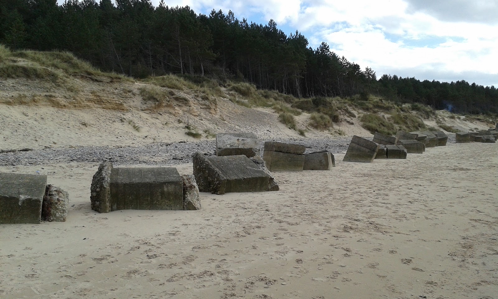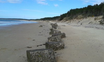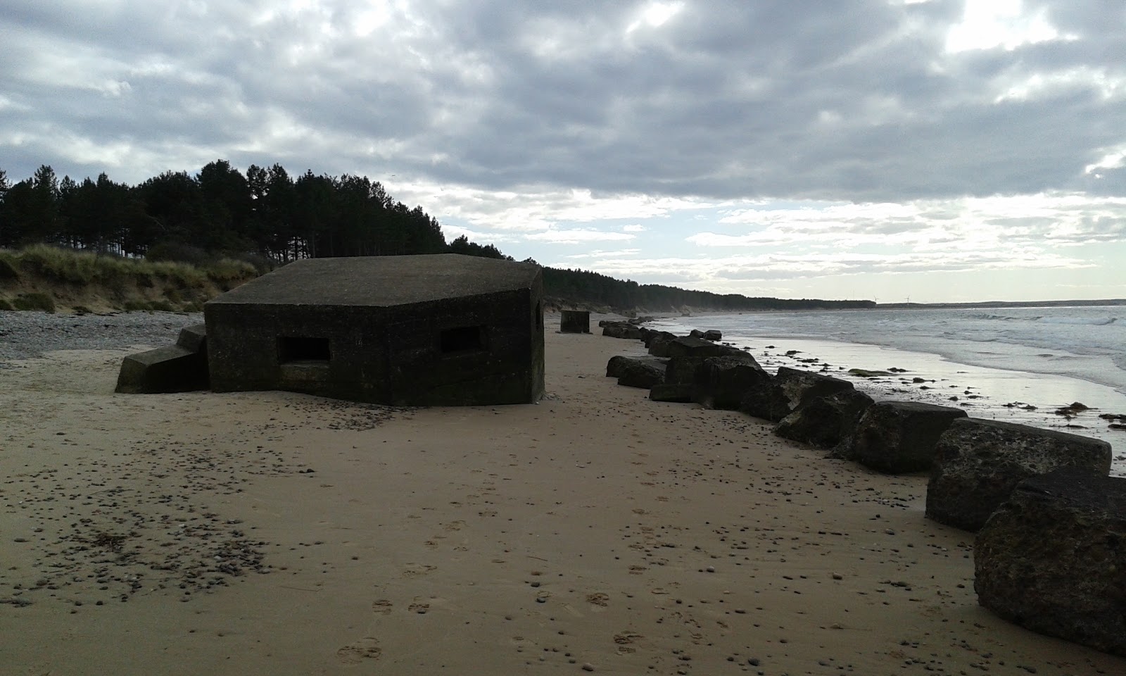 We then travelled a short distance along the coast to Roseisle beach. During the second world war the Moray coast was considered a vulnerable area for attack, so concrete anti-tank blocks were placed along this beach. There are also some pillboxes where lookouts would have been stationed. As you can see from the below picture, the sands have shifted and so have the defences.