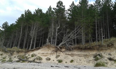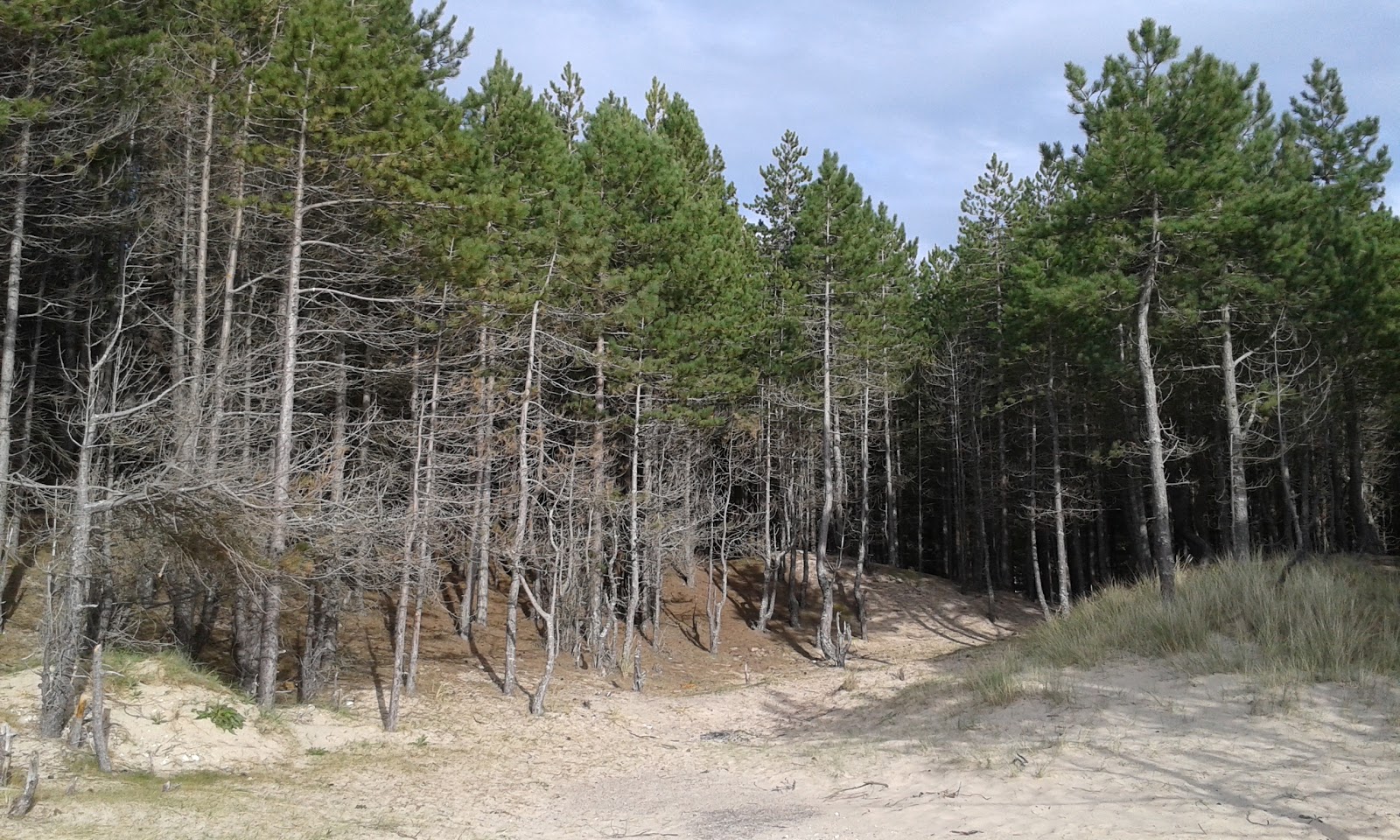 Corsican and Scots pines were planted in the 1930’s to try and stabilize the sand but as you can see the sands continue to shift with the trees losing the battle.