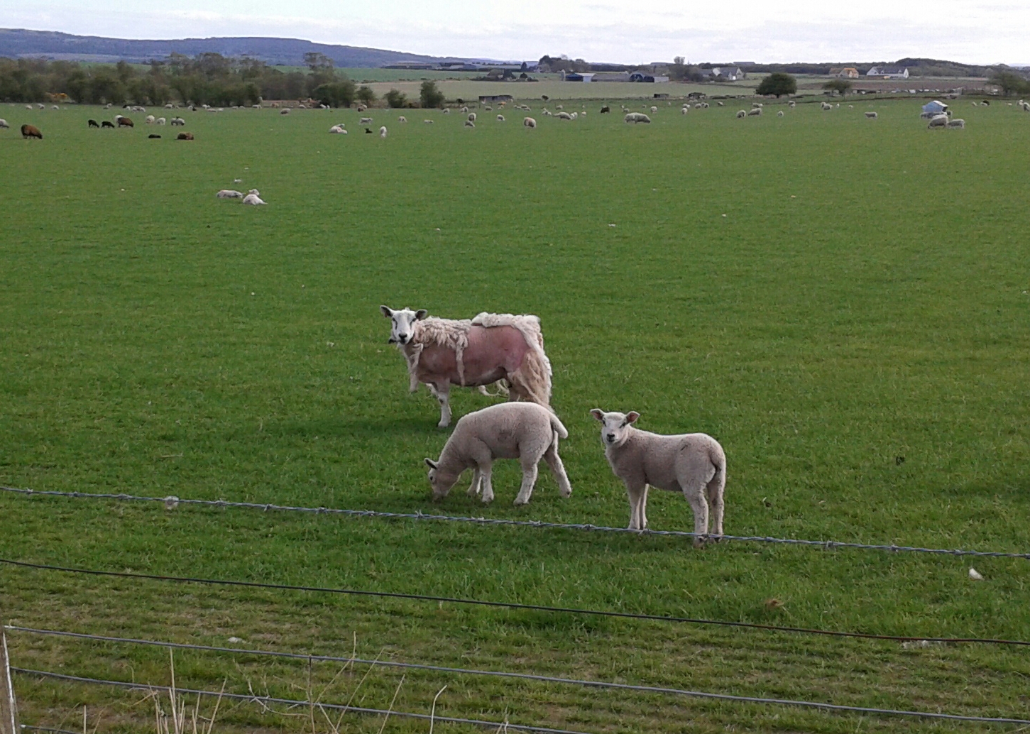 On our way home we stopped so that I could have a chat to these two chubby lambs and their very moth eaten mother.