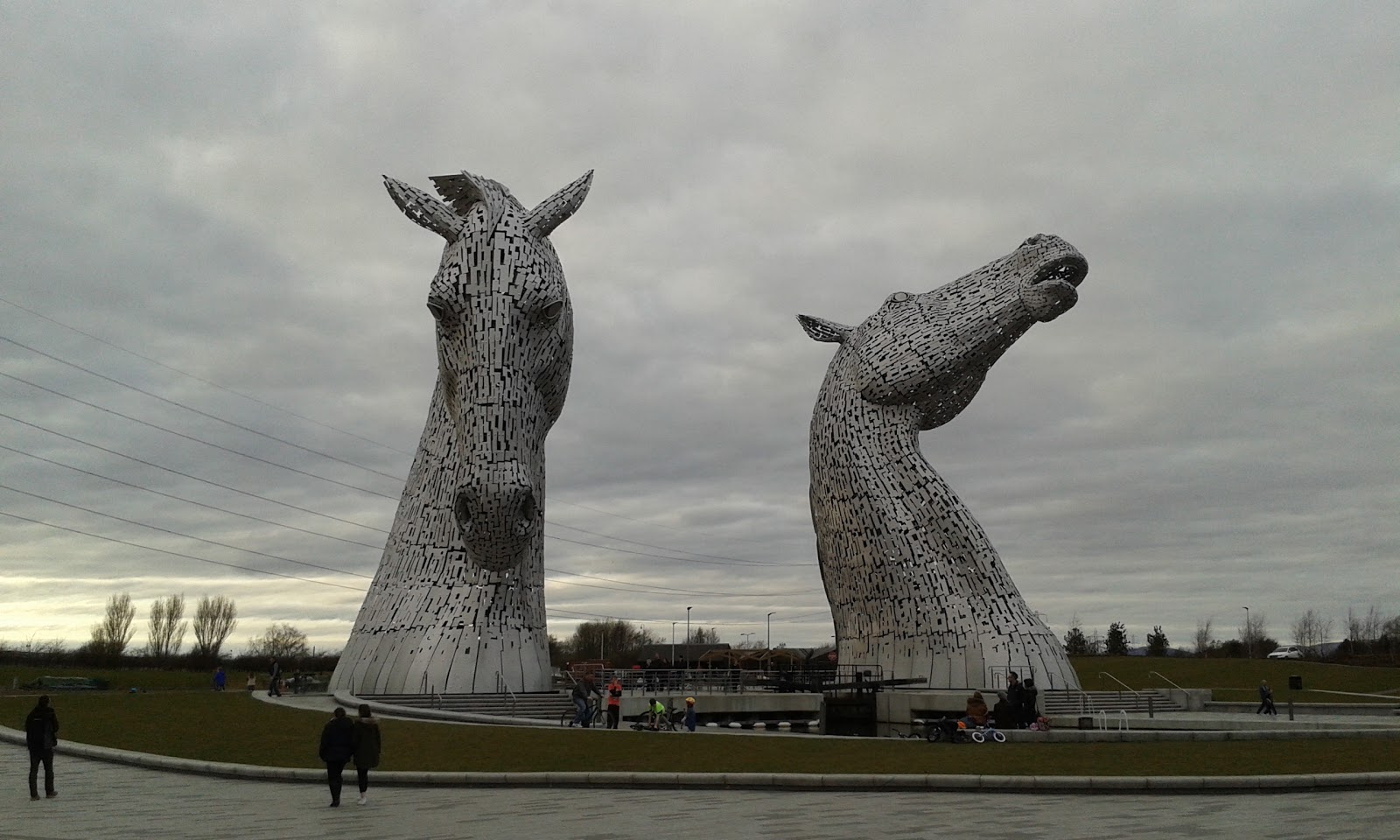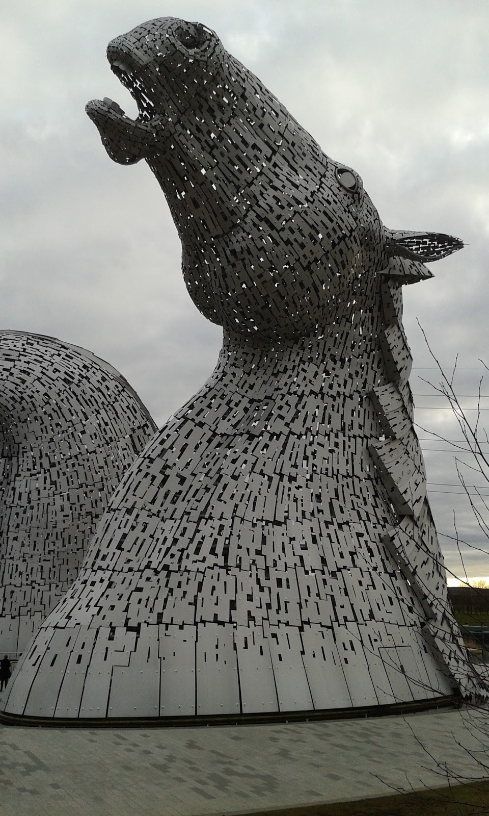 Our final stop on this magical mystery tour was at the Kelpies at Falkirk. These are two amazing sculptures based on the mystical shape shifting creature from Scottish legend. Kelpies are believed to lurk around rivers and lochs, usually in the form of horses, and they try and lure people to their death. They are also there to symbolise the impact that horses had on industry along the canals. They are 30 metres tall and weigh 300 tonnes each.