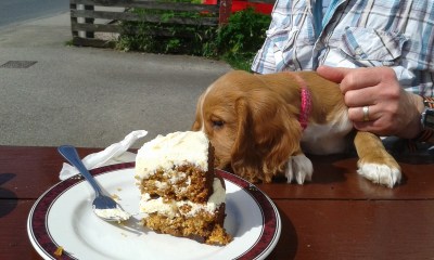 We stopped in Carrbridge for cake, sitting outside in the glorious sunshine. Bramble was very good and attracted lots of attention from people walking past. We’re getting her used to sights and sounds out in the big world. Don’t worry, despite what it looks like she didn’t get any cake.