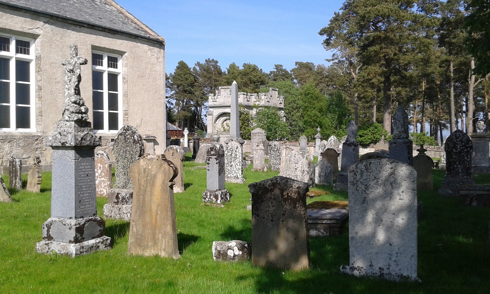 As we were driving aimlessly we came across this fabulous graveyard – how lucky was that? It is the graveyard for Clan Grant so that is the most common name on the headstones. The two large buildings in the below photo are mausoleums.