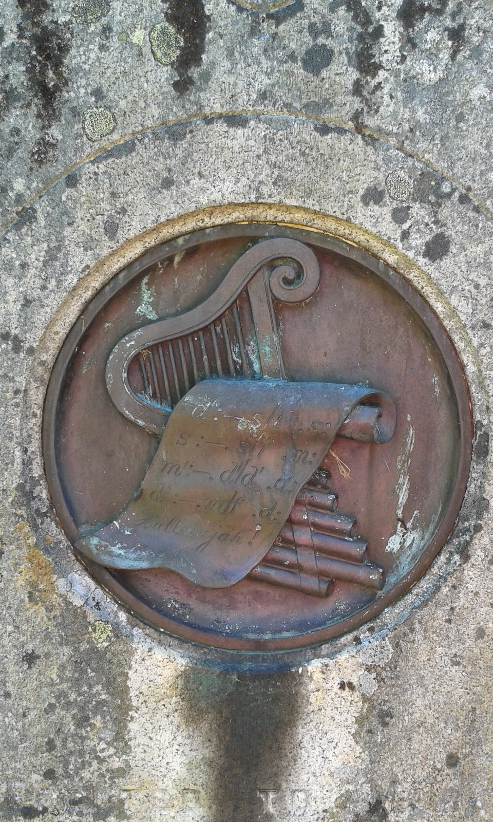I’m assuming that this person was a musician due to this lovely ornate carving on the headstone.