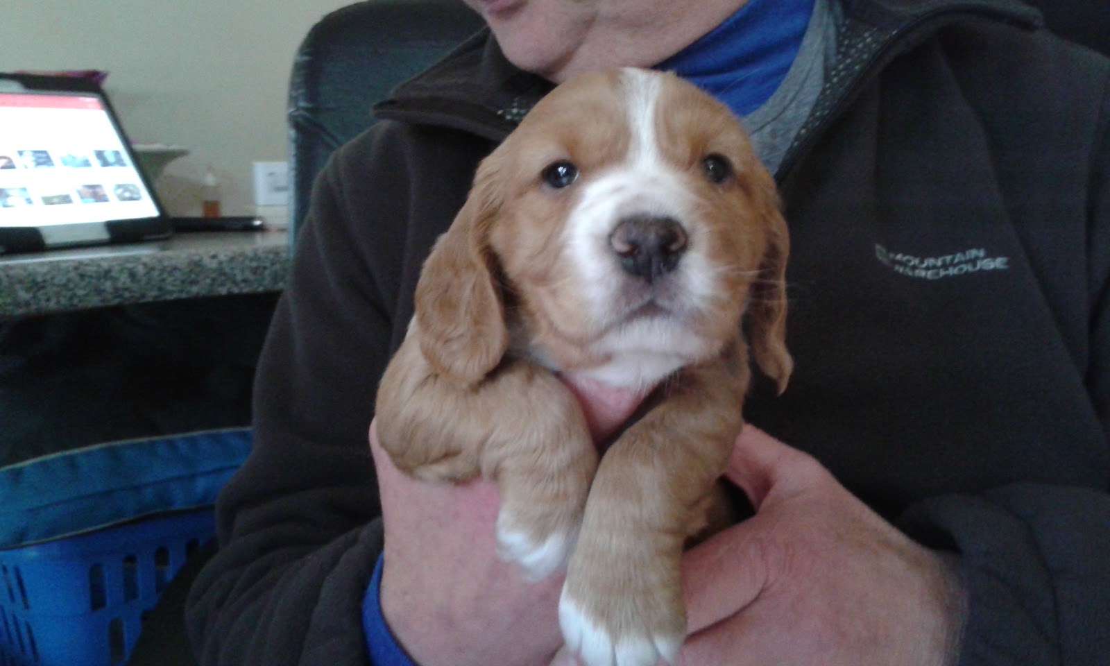 This was our visit to her at 4.5 weeks old and finally we could give her a cuddle – look at that face, how could we not fall for her.
