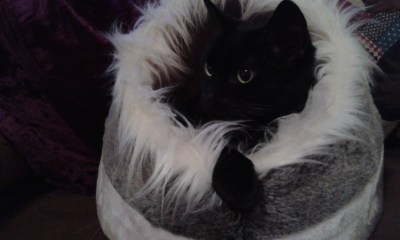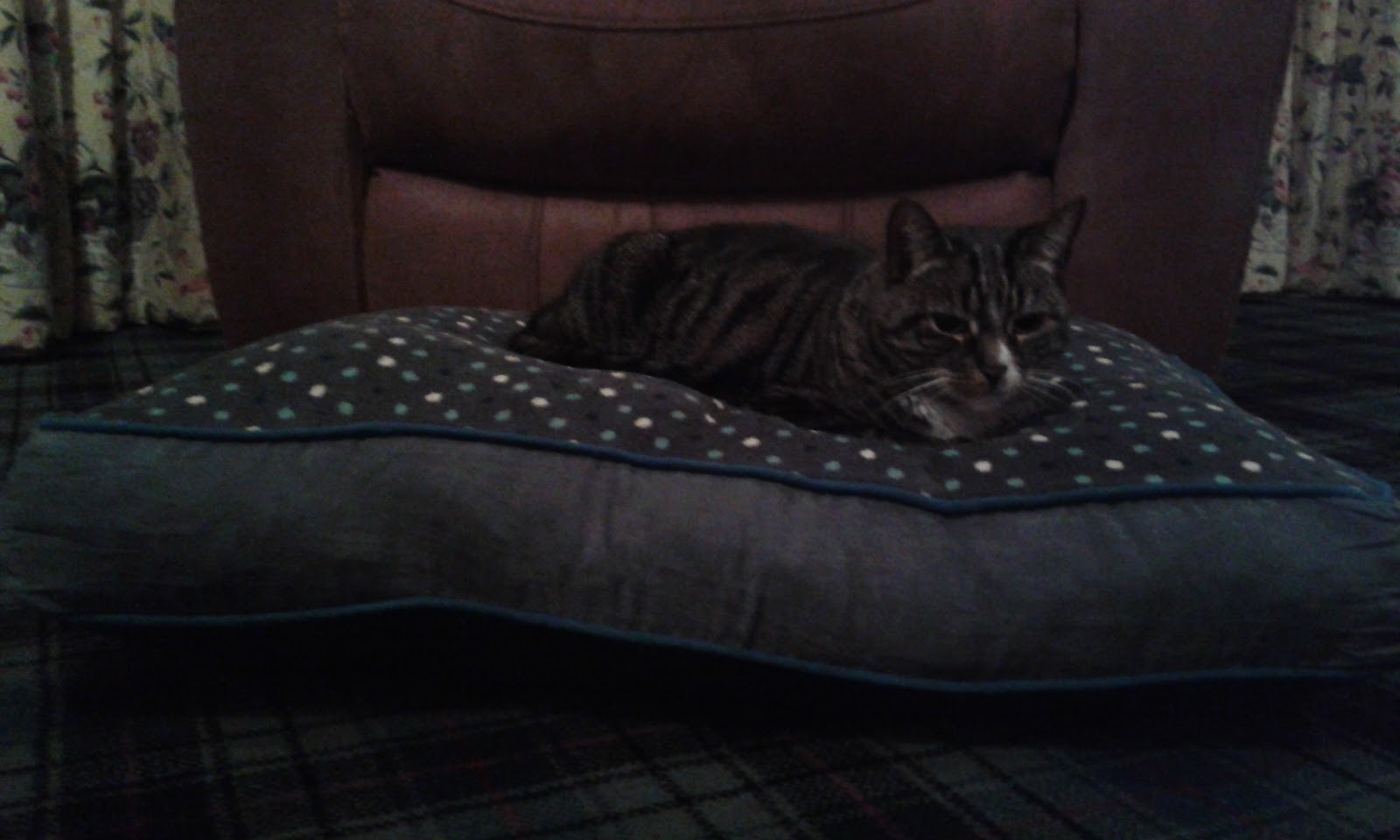 So now onto the brats that are our cats – Cookie (grey tabby) and Muffin (black). They’re now 12 years old and are a constant source of comfort and lots of moments of laughter. We’ve just bought them this new bed to try and pacify them for bringing a puppy into the house, and I’ve already had to order a second one as they keep fighting over this one.