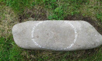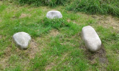 At a picnic spot we found these three rocks which have words carved into them about native plants.