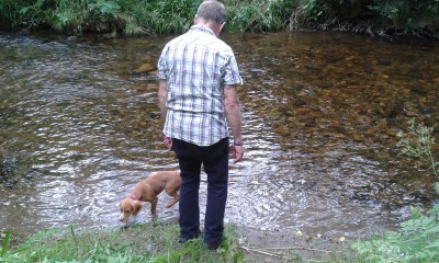 Ken trying to convince Bramble to go in the river – she got her feet wet but wasn’t very impressed by that.