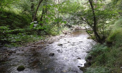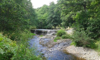After stopping for cake we then went to discover the Giant’s Chair which was signposted as a half mile walk, so off we went with Bramble having fun running alongside the river. Below is one of the distilleries that use the water from the incredibly clear river.