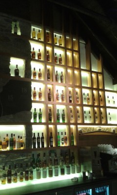 The whiskey behind the bar where we had lunch in the Glenfiddich cafe.