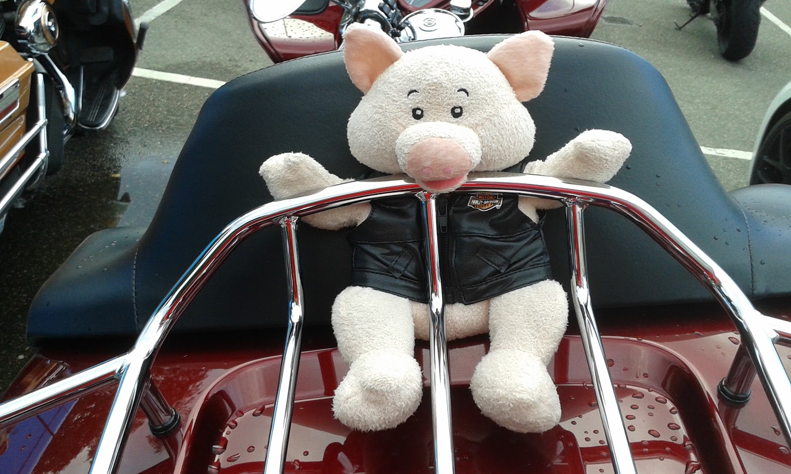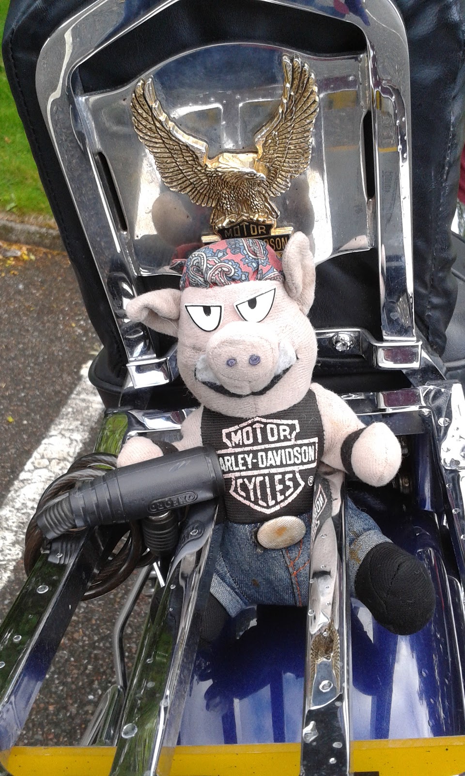 Lots of the bikes had soft toys attached to them which always amuses me as it’s a bit of a juxtaposition between the riders with their leathers and tatoos, and then there’s a cuddly toy on their bike. Here’s just a few we saw.