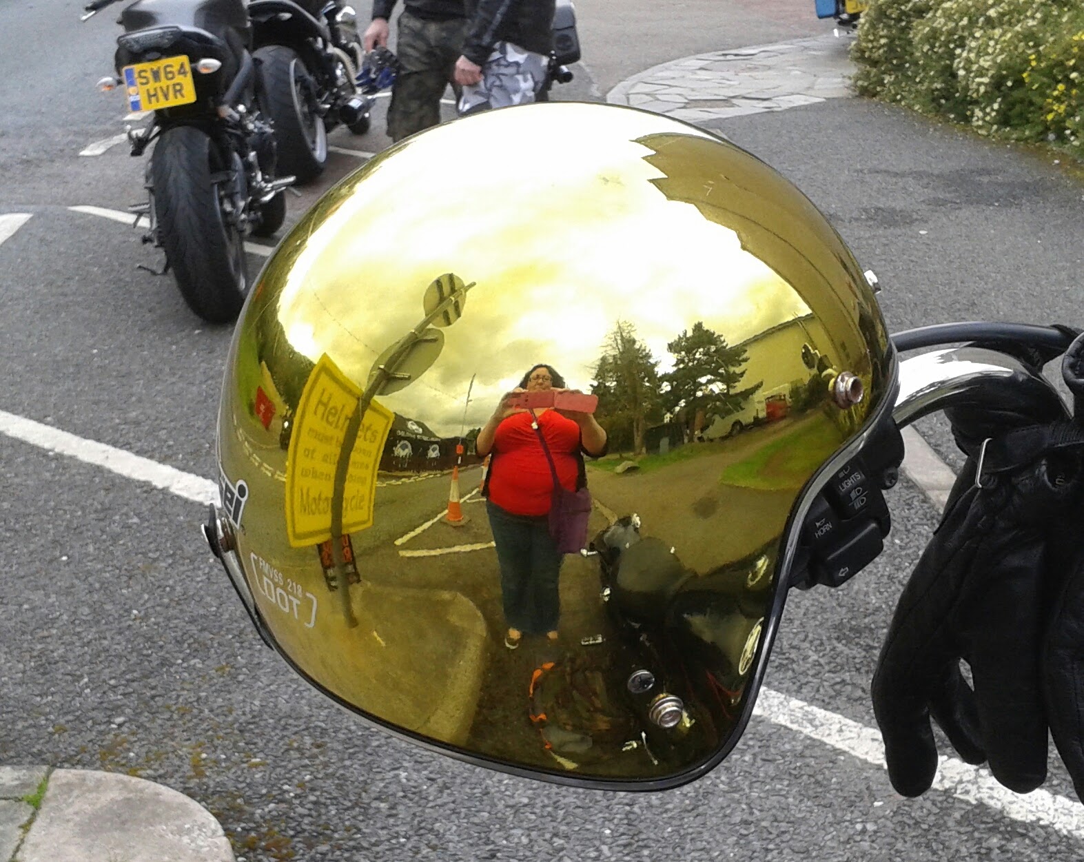 Another thing that I could have taken lots of pictures of was the helmets as there were so many different ones. Here’s an arty shot with my reflection in this gold helmet.