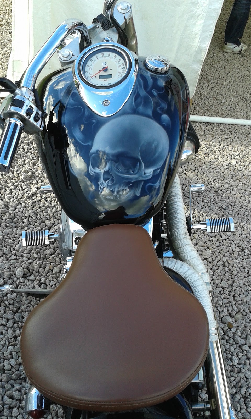 The artwork on some of the bikes is absolutely breathtaking, along with some of the custom design features on the bikes. I’ve picked out a few of our favourites to share with you and you’ll see that skulls feature quite heavily