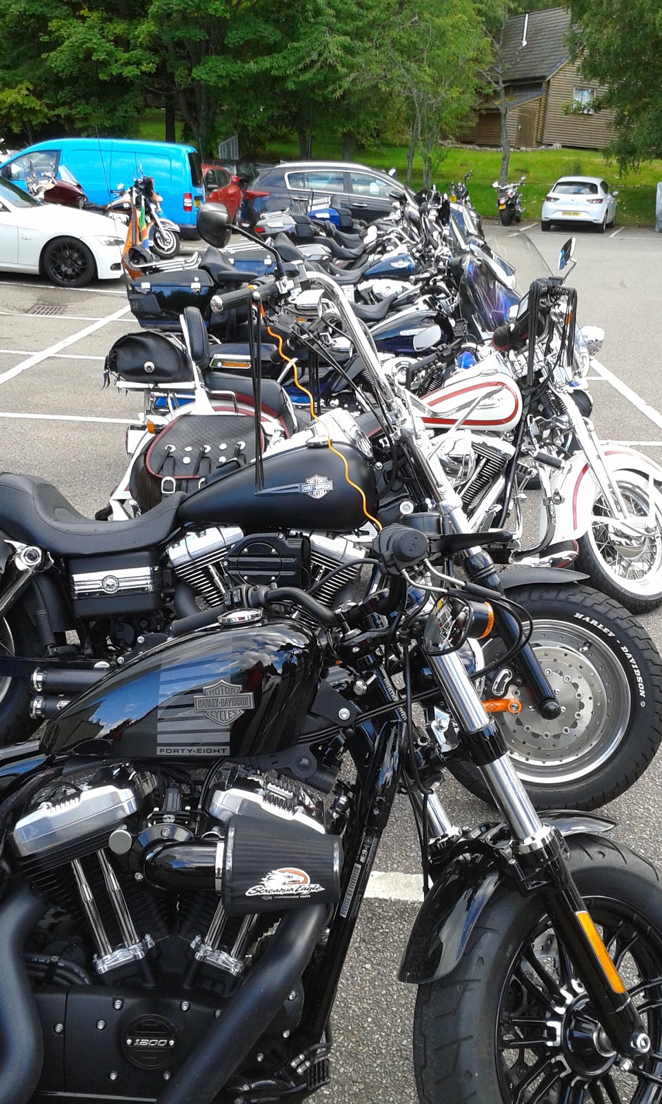 This weekend is the 20th anniversary of Thunder in the Glens, the largest Harley Davidson Rally in the UK and fast becoming one of the largest in Europe with people coming from all over the world to attend. It is held in Aviemore, a town in the Cairngorms and last year they had over two thousand bikes meet there. As you walk along the streets there is the constant deep rumble of the Harleys as there are always bikes going past – my oldest brother would love it.
