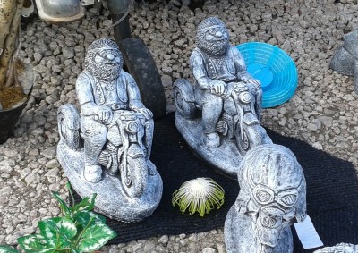 One of the many trade stalls was selling stone garden ornaments, which seemed a bit strange to me as anyone on a bike wouldn’t be buying one. Anyway, I thought these two bikers were very cute.