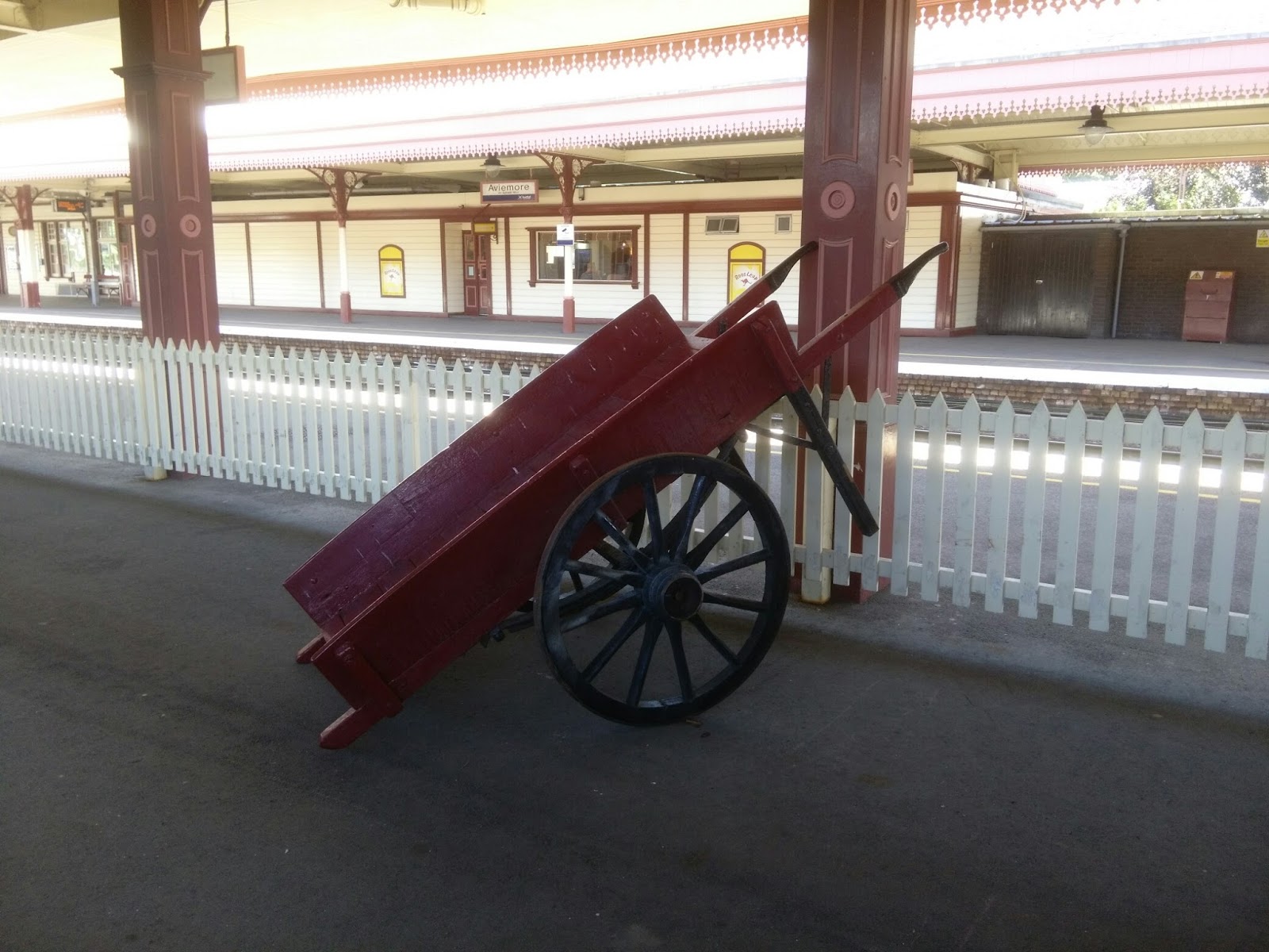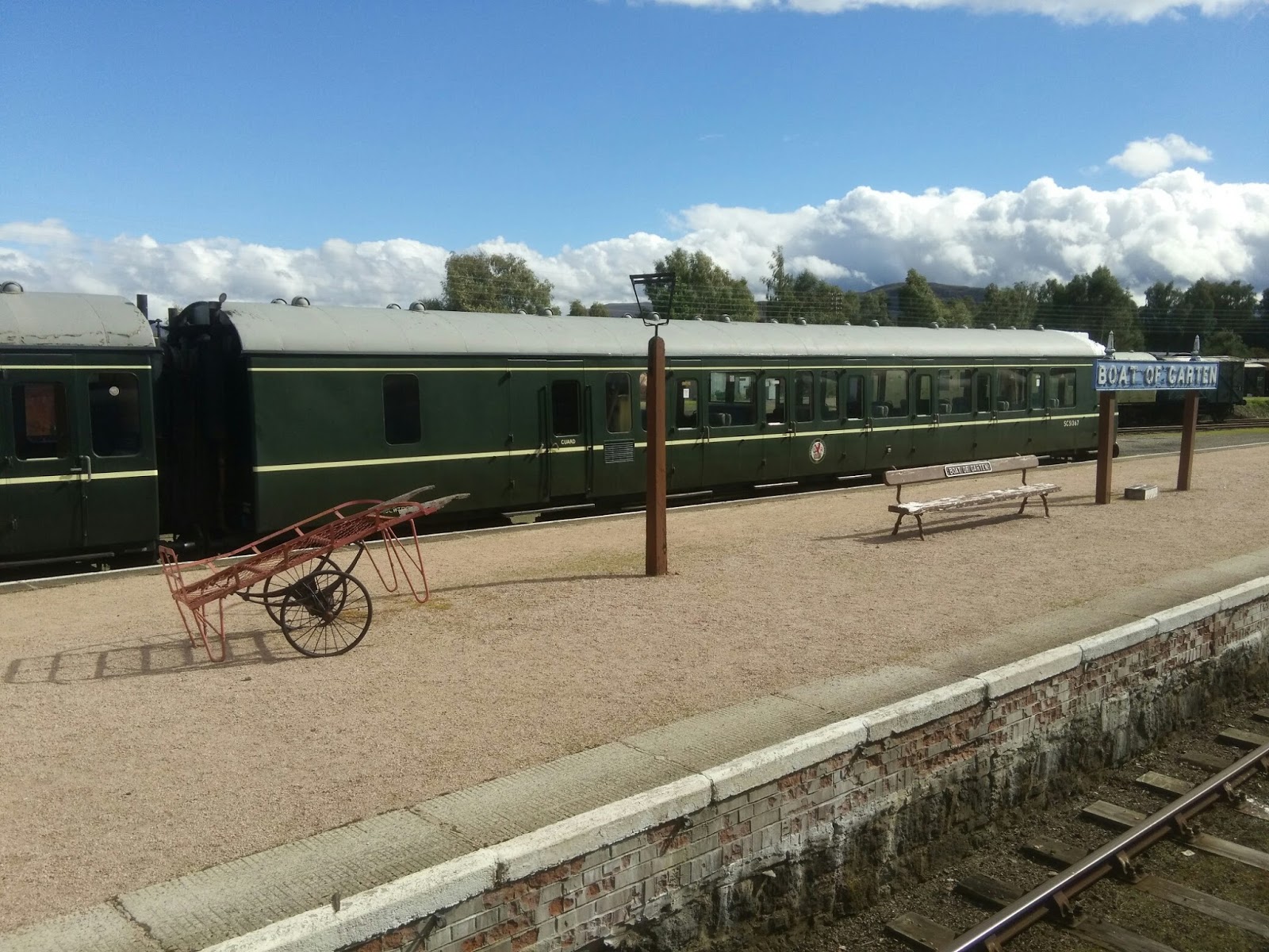 Our first stop on our journey was Boat of Garten which we just took photos out of the window of as we were in the middle of eating. There were lots of old trains around and one very old looking wooden carriage.