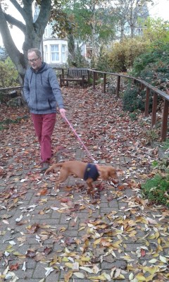My beloved and Bramble – no we haven’t started dressing her up, she still has to wear her vet shirt to stop her from licking her surgical wound, but when she’s walking we tuck it up so she doesn’t pee on it.