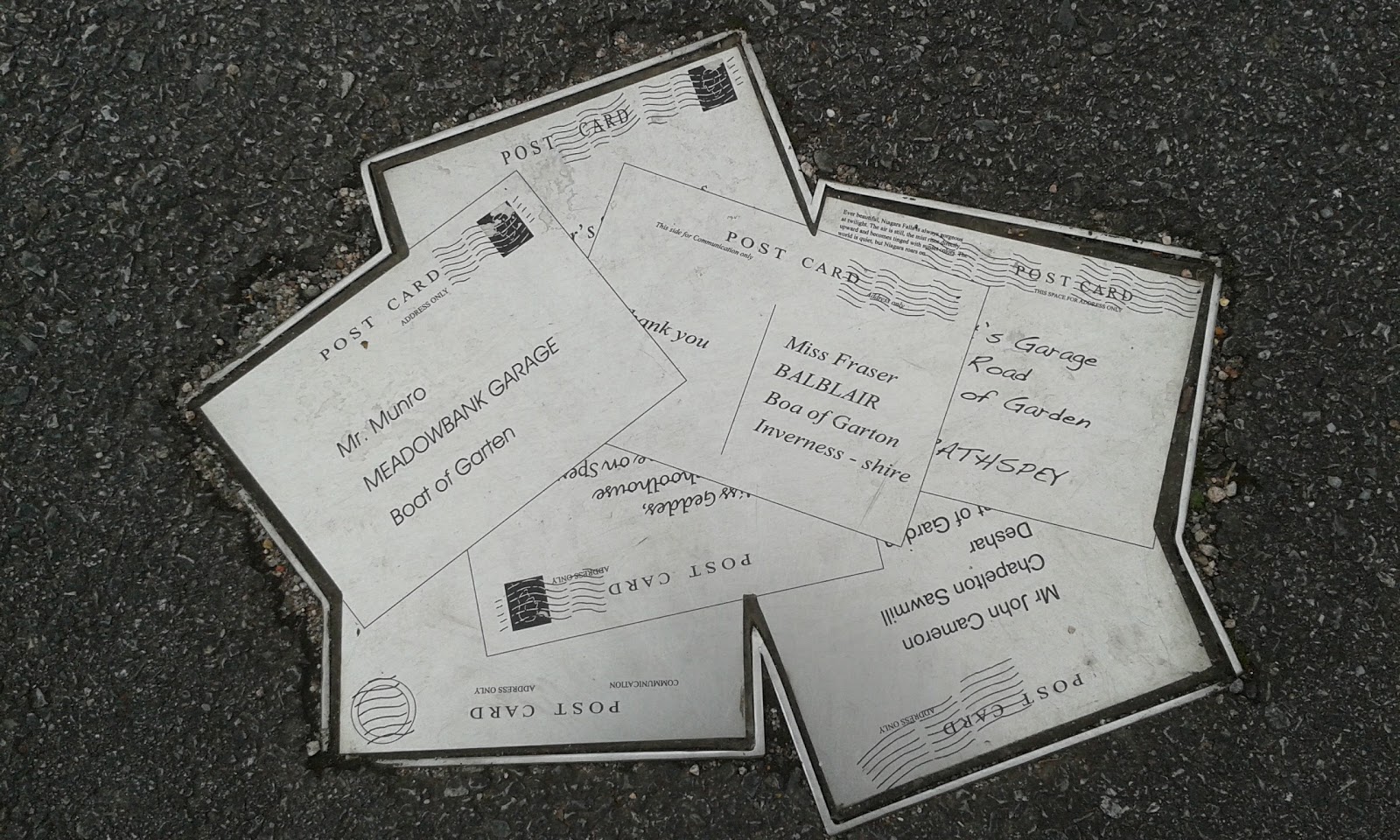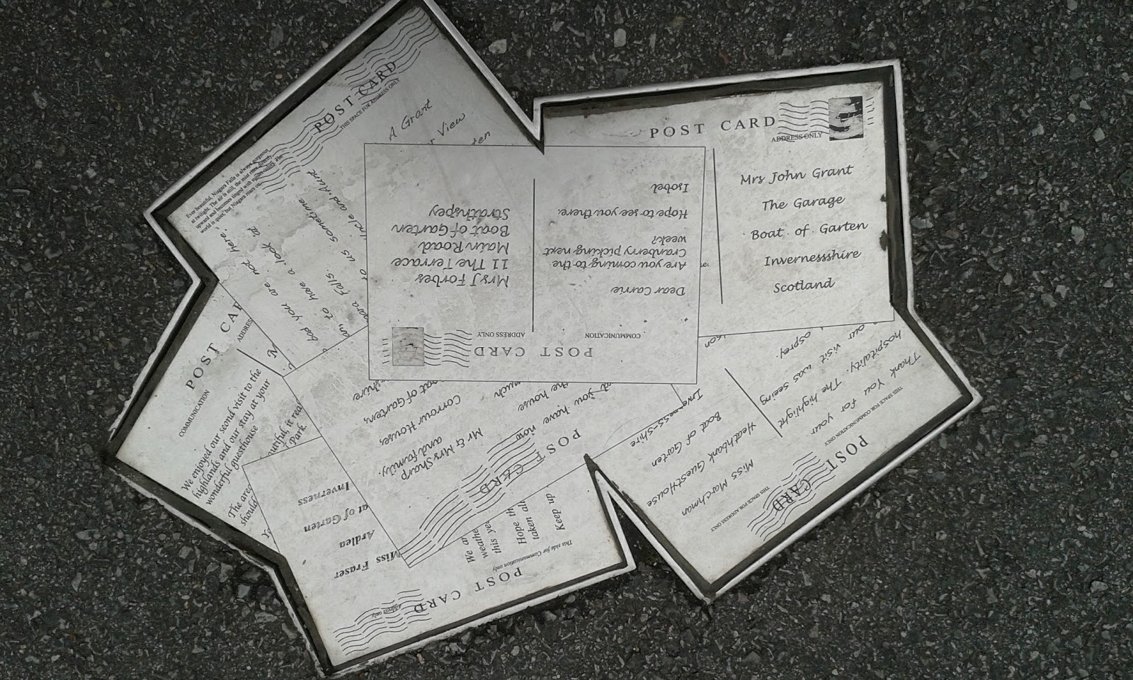 We found these metal postcards in the ground outside the station – there were a couple of groups and then there were lots of single ones spaced out around the carpark. Really nice, quirky think that I bet not everyone notices as they walk over the top of them.